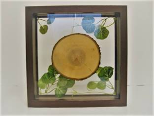 キャンピングのディスプレイを展示する場合、(流木&広葉樹の輪切り&木の実)